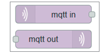 L’utilizzo di Node-Red consente di gestire due tipologie di nodi MQTT chiamati mqtt in e mqtt out che possono essere facilmente gestiti direttamente tramite l’interfaccia grafica. La UI consente di visualizzare quando queste due tipologie di node sono attive in base al colore con le quali vengono visualizzate.