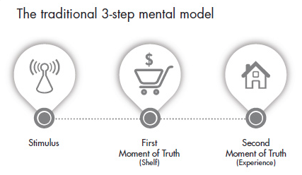 Questo tipo di approccio è stato ipotizzato per la prima volta da Procter & Gamble nel 2005 teorizzando il Primo Momento della Verità (First Moment of Truth – FMOT).